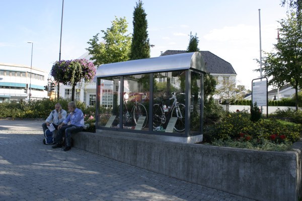 I løpet av sommeren ble det høytidelig avduking av et monter med sykkelting til Thor Hushovd og Dag Otto Lauritzen, og under min siste «byvanding» fikk jeg den tvilsomme glede av å se dette buret. Et svært glassbur plassert midt i Grimstad sentrum som inneholder to sykler og noen sykkeltrøyer?!