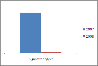Da jeg ble syk etter nyttårsaften i fjor og ikke hadde lyst på røyk, fant jeg like ut at det var like greit å slutte. Jeg har aldri vært noen storrøyker, og har i perioder røykt 2-3 sigaretter om dagen, dog betraktelig mer til fest. Det gikk ganske greit å slutte helt fram til i høst hvor jeg presterte å sprekke ved et par festlige anledninger, hvorpå jeg gav f* ved de neste par anledningene. Jeg anslår at jeg likevel neppe har røyket mer enn 30 sigaretter i år, noe som må sies å være en betraktelig forbedring fra i fjor (ca. 20 pr uke).