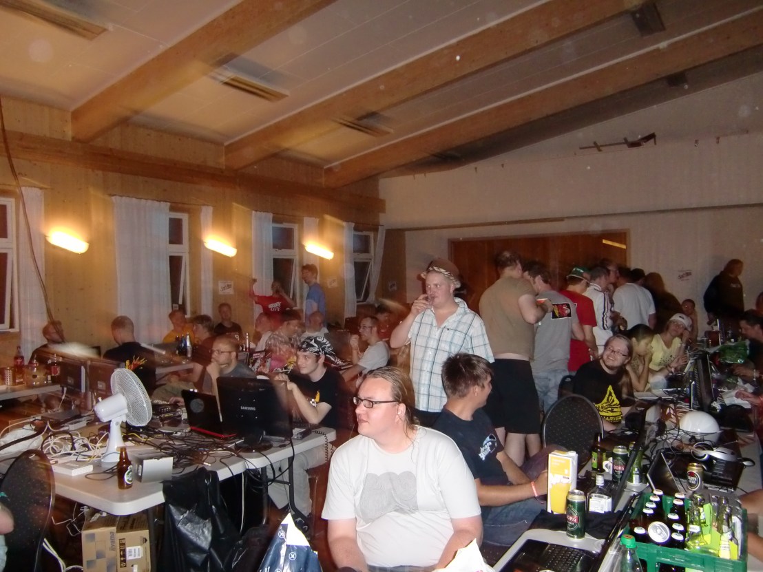 Jeg fikk også koordinert med Håvard som var i Oslo. Han var ikke engang klar over at partyet skulle holde sted denne helgen, men fikk allikevel booket om planer, pakket snippsekken sin kjapt og hoppet på toget til Ås. Kjøreturen gikk greit, men det tok litt lenger tid enn forventet (spesielt siden jeg akkurat kom for sent til ferga, selvfølgelig..), så Håvard var fremme litt før meg. Jeg var positivt overrasket over hvor mye folk det var. Mange kjente fjes og god stemning. Darklite hadde nok engang overgått seg selv med medbrakt campingvogn med bar, SidBox og flipperspill. Kaktusen spilte en meget habil konsert rundt midnatt.